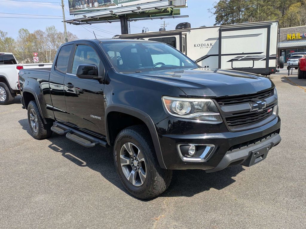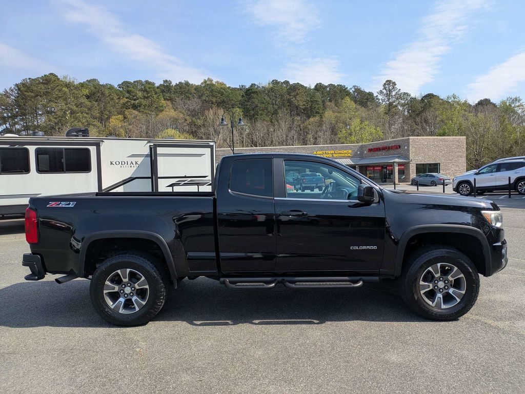 Black 2016 Chevrolet Colorado Z71 3.6L V6 DGI DOHC VVT 6-Speed Automatic Black Bowtie Emblem Package (LPO), GearOn Divider Package (LPO) (Cargo Tie-Down Rings (Set of 4) (LPO) and Pickup Box Cargo Divider (LPO)), Heavy-Duty Trailering Package, Preferred Equipment Group 4Z7 (Transfer Case Shield), 3" Round Black Off-Road Step Bars (LPO), 4-Way Power Front Passenger Seat Adjuster, 4-Wheel Disc Brakes, 6 Speakers, 6-Speaker Audio System Feature, ABS brakes, Air Conditioning, All-Weather Floor Mats, Alloy wheels, AM/FM radio: SiriusXM, Apple CarPlay, Auto-dimming Rear-View mirror, Automatic temperature control, Black Spray-On Bedliner w/Chevrolet Logo, Bumpers: body-color, Cloth/Leatherette Seat Trim, Compass, Delay-off headlights, Driver 4-Way Power Seat Adjuster, Driver door bin, Driver vanity mirror, Dual front impact airbags, Dual front side impact airbags, Electronic Stability Control, Emergency communication system: OnStar Guidance, Exterior Parking Camera Rear, Front anti-roll bar, Front Bucket Seats, Front Center Armrest, Front fog lights, Front License Plate Kit, Front reading lights, Front wheel independent suspension, Fully automatic headlights, Heated Driver & Front Passenger Seats, Heated front seats, Illuminated entry, Low tire pressure warning, Occupant sensing airbag, Outside temperature display, Overhead airbag, Overhead console, Panic alarm, Passenger door bin, Passenger vanity mirror, Power door mirrors, Power Driver Lumbar Control Seat Adjuster, Power driver seat, Power Passenger Lumbar Control Seat Adjuster, Power passenger seat, Power steering, Power windows, Premium audio system: Chevrolet MyLink, Radio data system, Radio: AM/FM/SiriusXM w/Chevrolet MyLink, Rear step bumper, Rear window defroster, Remote keyless entry, Security system, SiriusXM Satellite Radio, Speed control, Speed-sensing steering, Split folding rear seat, Steering wheel mounted audio controls, Tachometer, Telescoping steering wheel, Tilt steering wheel, Tow/Haul Mode, Traction control, Trip computer, Variably intermittent wipers, Wheel Flares, and Wheels: 17" x 8" Dark Argent Metallic Cast Alloy.
