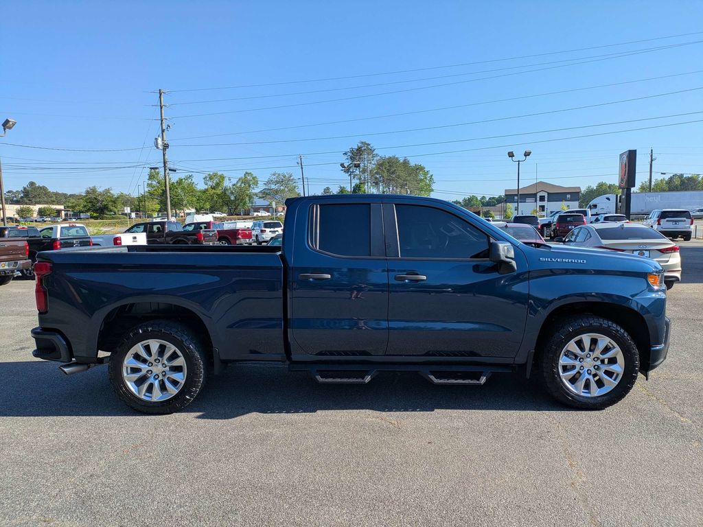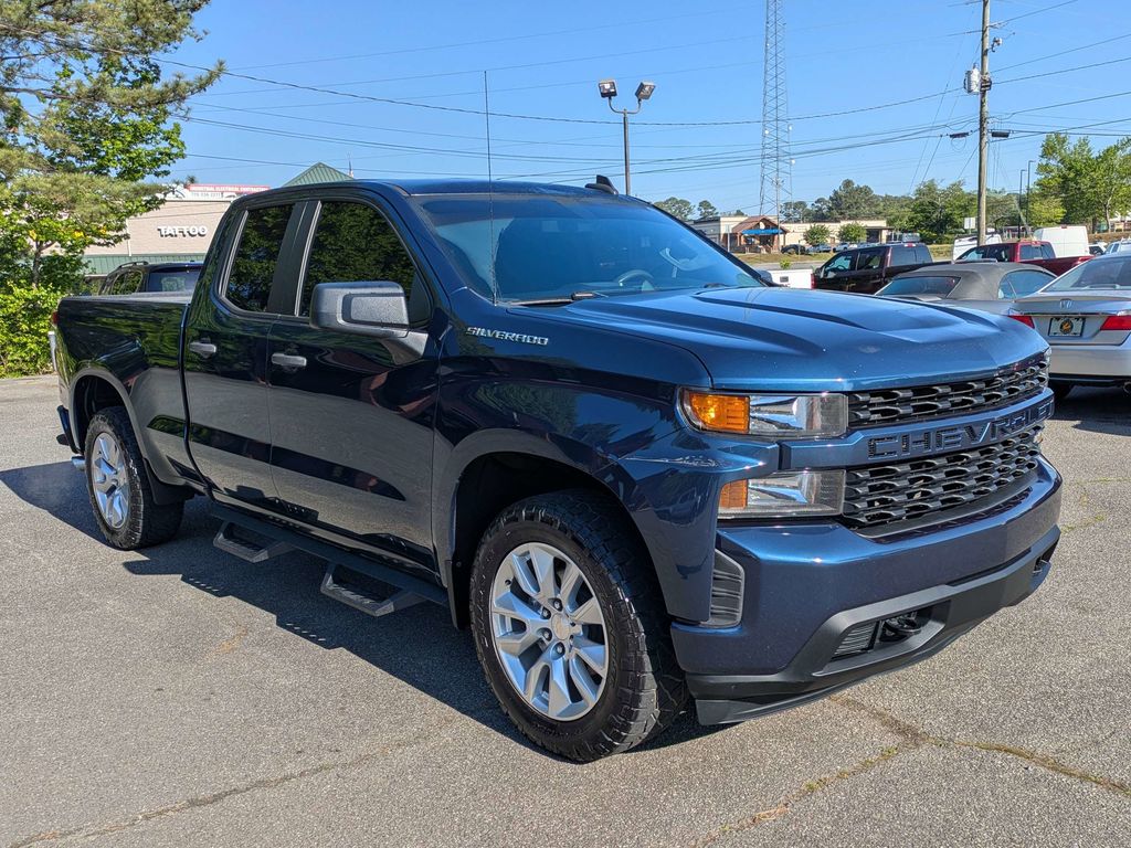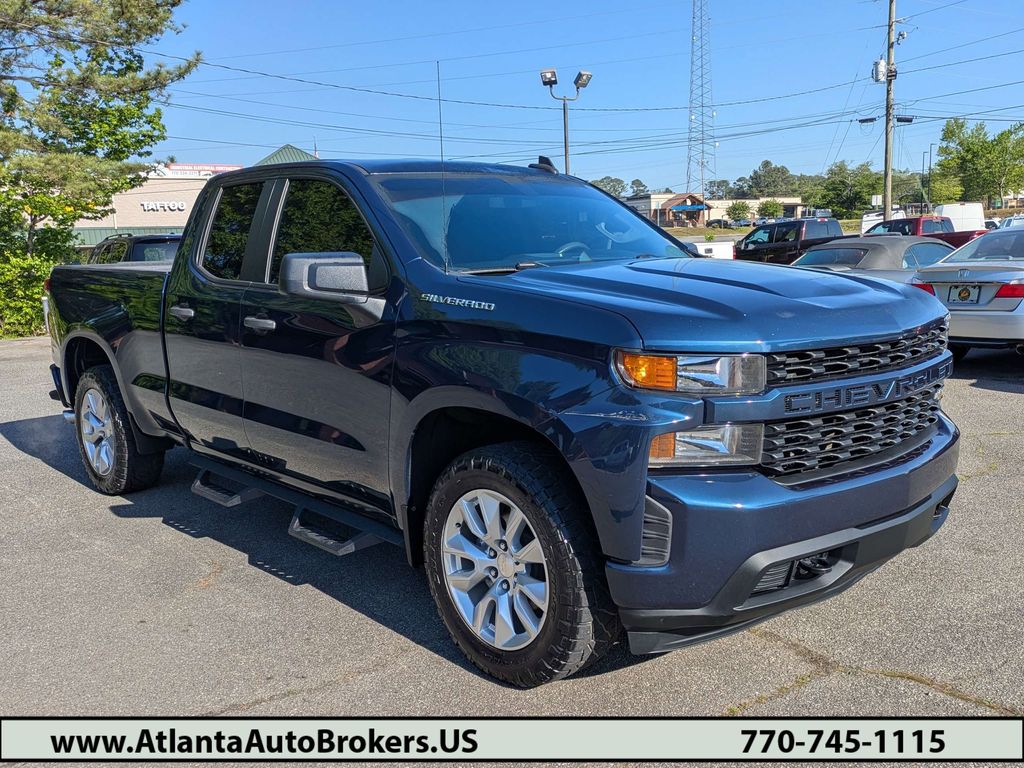 Northsky Blue Metallic 2020 Chevrolet Silverado 1500 Custom EcoTec3 4.3L V6 6-Speed Automatic Electronic with Overdrive 4D Double Cab Custom Convenience Package (Electric Rear-Window Defogger, EZ Lift Power Lock & Release Tailgate, LED Cargo Area Lighting, Remote Vehicle Starter System, and Theft Deterrent System (Unauthorized Entry)), Custom Value Package, Infotainment Package (4G LTE Wi-Fi Hot Spot Capable, Chevrolet Connected Access Capable, Compass, OnStar & Chevrolet Connected Services Capable, and SiriusXM Radio), Preferred Equipment Group 1CX (170 Amps Alternator, 3.5" Diagonal Monochromatic Display, Bluetooth® For Phone, Body Color Grille, Color-Keyed Carpeting Floor Covering, Deep-Tinted Glass, Front Frame-Mounted Black Recovery Hooks, Front Rubberized Vinyl Floor Mats, Locking Tailgate, Manual Tilt-Wheel Steering Column, Power Door Locks, Power Front Windows w/Driver Express Up/Down, Power Front Windows w/Passenger Express Down, Power Rear Windows w/Express Down, Rear 60/40 Folding Bench Seat (Folds Up), Rear Rubberized-Vinyl Floor Mats, Remote Keyless Entry, and Steering Wheel Mounted Electronic Cruise Control), Trailering Package (Hitch Guidance), 3.42 Rear Axle Ratio, 4-Wheel Disc Brakes, 6 Speakers, ABS brakes, Air Conditioning, Alloy wheels, Apple CarPlay/Android Auto, Brake assist, Bumpers: body-color, Cloth Seat Trim, Delay-off headlights, Driver door bin, Driver vanity mirror, Dual front impact airbags, Dual front side impact airbags, Electronic Stability Control, Exterior Parking Camera Rear, Front 40/20/40 Split-Bench Seat, Front anti-roll bar, Front Center Armrest, Front reading lights, Front wheel independent suspension, Fully automatic headlights, Heated door mirrors, Heavy Duty Suspension, Heavy-Duty Rear Locking Differential, Illuminated entry, Low tire pressure warning, Occupant sensing airbag, Outside temperature display, Overhead airbag, Overhead console, Panic alarm, Passenger door bin, Passenger vanity mirror, Polished Exhaust Tip, Power door mirrors, Power steering, Power windows, Radio data system, Radio: Chevrolet Infotainment 3 System, Rear reading lights, Rear step bumper, Remote keyless entry, Speed control, Speed-sensing steering, Split folding rear seat, Tachometer, Tilt steering wheel, Traction control, Trip computer, Variably intermittent wipers, Voltmeter, and Wheels: 20" x 9" Bright Silver Painted Aluminum.