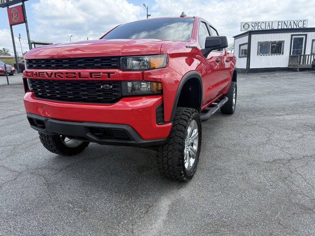 Red Hot 2021 Chevrolet Silverado 1500 Custom 2.7L Turbo 8-Speed Automatic 4D Crew Cab Custom Convenience Package (Electric Rear-Window Defogger, EZ Lift Power Lock & Release Tailgate, LED Cargo Area Lighting, Remote Vehicle Starter System, and Theft Deterrent System (Unauthorized Entry)), Custom Value Package, Infotainment Package (4G LTE Wi-Fi Hot Spot Capable, Chevrolet Connected Access Capable, OnStar & Chevrolet Connected Services Capable, and SiriusXM Radio), Preferred Equipment Group 1CX (170 Amp Alternator, 3.5" Diagonal Monochromatic Display, Bluetooth® For Phone, Body Color Grille, Color-Keyed Carpeting Floor Covering, Compass, Deep-Tinted Glass, Electronic Cruise Control, Front Frame-Mounted Black Recovery Hooks, Front Rubberized Vinyl Floor Mats, Manual Tilt Wheel Steering Column, Power Door Locks, Power Front Windows w/Driver Express Up/Down, Power Front Windows w/Passenger Express Down, Power Rear Windows w/Express Down, Rear 60/40 Folding Bench Seat (Folds Up), Rear Rubberized-Vinyl Floor Mats, Remote Keyless Entry, and Standard Tailgate), Rally Edition (4" Black Round Assist Steps (LPO), Black Chrome Exhaust Tip (LPO), Chevytec Spray-On Black Bedliner, and Wheels: 20" x 9" High Gloss Black Painted Alum), Trailering Package (Hitch Guidance), 120-Volt Bed Mounted Power Outlet, 120-Volt Instrument Panel Power Outlet, 3.42 Rear Axle Ratio, 4-Wheel Disc Brakes, 40/20/40 Front Split Bench Seat, 6 Speakers, ABS brakes, Air Conditioning, Alloy wheels, AM/FM radio: SiriusXM, Apple CarPlay/Android Auto, Auto-Locking Rear Differential, Brake assist, Bumpers: body-color, Cloth Seat Trim, Delay-off headlights, Driver door bin, Driver vanity mirror, Dual front impact airbags, Dual front side impact airbags, Electronic Stability Control, Front anti-roll bar, Front Center Armrest w/Storage, Front reading lights, Front wheel independent suspension, Fully automatic headlights, Heated door mirrors, Heavy Duty Suspension, Illuminated entry, Low tire pressure warning, Occupant sensing airbag, Outside temperature display, Overhead airbag, Overhead console, Panic alarm, Passenger door bin, Passenger vanity mirror, Polished Exhaust Tip, Power door mirrors, Power steering, Power windows, Premium audio system: Chevrolet Infotainment 3, Radio data system, Radio: Chevrolet Infotainment 3 System, Rear reading lights, Rear step bumper, Rear window defroster, Remote keyless entry, Security system, Single-Zone Manual/Semi-Automatic Air Conditioning, Speed control, Speed-sensing steering, Split folding rear seat, Tachometer, Tilt steering wheel, Traction control, Trip computer, Variably intermittent wipers, Voltmeter, and Wheels: 20" x 9" Bright Silver Painted Aluminum.