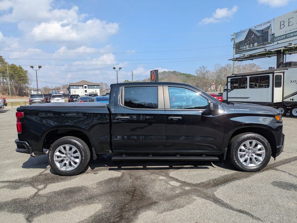 Black 2022 Chevrolet Silverado 1500 LTD Custom 2.7L Turbo 8-Speed Automatic 4D Crew Cab Custom Convenience Package (Electric Rear-Window Defogger, EZ Lift Power Lock & Release Tailgate, LED Cargo Area Lighting, Remote Vehicle Starter System, and Theft Deterrent System (Unauthorized Entry)), Custom Value Package, Dark Essentials Package (LPO) (Black Name Plates (LPO)), Infotainment Package (Chevrolet Connected Access Capable, OnStar & Chevrolet Connected Services Capable, SiriusXM Radio, and Wi-Fi Hot Spot Capable), Preferred Equipment Group 1CX (3.5" Monochromatic Display Driver Info Center, Bluetooth® For Phone, Body Color Grille, Color-Keyed Carpeting Floor Covering, Compass, Deep-Tinted Glass, Electronic Cruise Control, Front Rubberized Vinyl Floor Mats, Manual Tilt Wheel Steering Column, Power Door Locks, Power Front Windows w/Driver Express Up/Down, Power Front Windows w/Passenger Express Down, Power Rear Windows w/Express Down, Rear 60/40 Folding Bench Seat (Folds Up), Rear Rubberized-Vinyl Floor Mats, Remote Keyless Entry, and Standard Tailgate), Safety Confidence Package (4.2" Diagonal Color Display Driver Info Center, Automatic Emergency Braking, Forward Collision Alert, Front Pedestrian Braking, and Steering Wheel Audio Controls), Trailering Package (Hitch Guidance), 10-Way Power Driver Seat w/Lumbar, 120-Volt Bed Mounted Power Outlet, 120-Volt Instrument Panel Power Outlet, 3.42 Rear Axle Ratio, 4-Wheel Disc Brakes, 40/20/40 Front Split Bench Seat, 6 Speakers, 6-Speaker Audio System, ABS brakes, Air Conditioning, Alloy wheels, AM/FM radio: SiriusXM, Apple CarPlay/Android Auto, Auto-Locking Rear Differential, Black Tailgate CHEVROLET Lettering (LPO), Brake assist, Bumpers: body-color, Cloth Seat Trim, Delay-off headlights, Driver door bin, Driver vanity mirror, Dual front impact airbags, Dual front side impact airbags, Electronic Stability Control, Front anti-roll bar, Front Black Bowtie Emblem (LPO), Front Center Armrest w/Storage, Front License Plate Kit, Front reading lights, Front wheel independent suspension, Fully automatic headlights, Heated door mirrors, Heavy Duty Suspension, Illuminated entry, Low tire pressure warning, Occupant sensing airbag, Outside temperature display, Overhead airbag, Overhead console, Panic alarm, Passenger door bin, Passenger vanity mirror, Power door mirrors, Power steering, Power windows, Premium audio system: Chevrolet Infotainment 3, Radio data system, Radio: Chevrolet Infotainment 3 System, Rear reading lights, Rear step bumper, Rear window defroster, Remote keyless entry, Security system, Speed control, Speed-sensing steering, Split folding rear seat, Tachometer, Tilt steering wheel, Traction control, Trip computer, Variably intermittent wipers, Voltmeter, and Wheels: 20" x 9" Bright Silver Painted Aluminum.