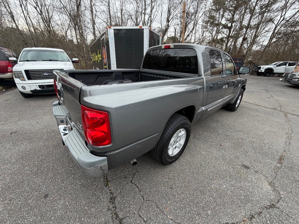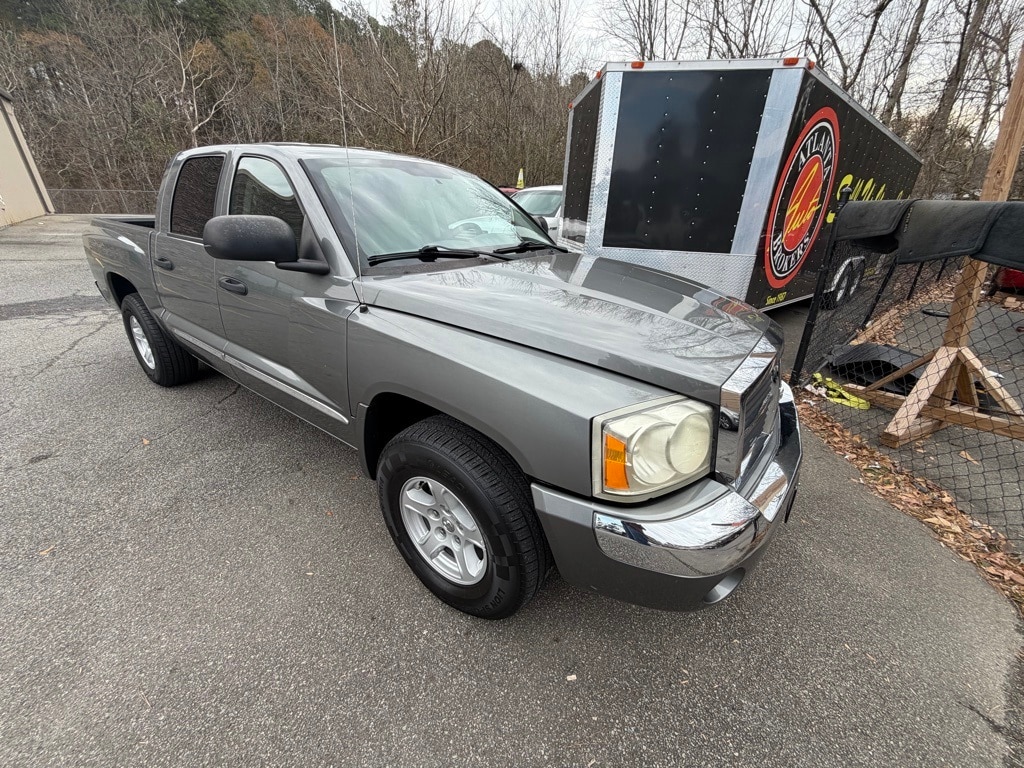 Mineral Gray Metallic Clearcoat 2005 Dodge Dakota Laramie 4.7L V8 MPI 5-Speed Automatic 4D Crew Cab Heavy Duty Service Group, Quick Order Package 26J, Trailer Tow Group (7 Pin Wiring Harness, 750 Amp Maintenance Free Battery, Auxiliary Transmission Oil Cooler, Class IV Receiver Hitch, Exterior Mirrors Heating Element, Foldaway Multi-Functional 6x9 Power Mirrors, Heavy-Duty Engine Cooling, and Power Steering Cooler), 16 x 8.0 Cast Aluminum Wheels, 3.55 Axle Ratio, 6 Speakers, ABS brakes, Air Conditioning, Alloy wheels, AM/FM 6-Disc CD & MP3, AM/FM radio, Auto-dimming Rear-View mirror, Bodyside moldings, Bumpers: body-color, CD player, Compass, Delay-off headlights, Driver door bin, Dual front impact airbags, Floor Console, Front anti-roll bar, Front Bucket Seats, Front Center Armrest, Front fog lights, Front reading lights, Front wheel independent suspension, Fully automatic headlights, Garage door transmitter: HomeLink, Heavy Duty Suspension, Illuminated entry, Leather steering wheel, Leather Trimmed Bucket Seats, Occupant sensing airbag, Outside temperature display, Overhead console, Panic alarm, Passenger door bin, Passenger vanity mirror, Power door mirrors, Power driver seat, Power steering, Power windows, Radio data system, Rear anti-roll bar, Rear reading lights, Rear step bumper, Remote keyless entry, Security system, Speed control, Split folding rear seat, Steering wheel mounted audio controls, Tachometer, Tilt steering wheel, Trip computer, and Variably intermittent wipers.
