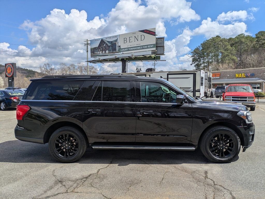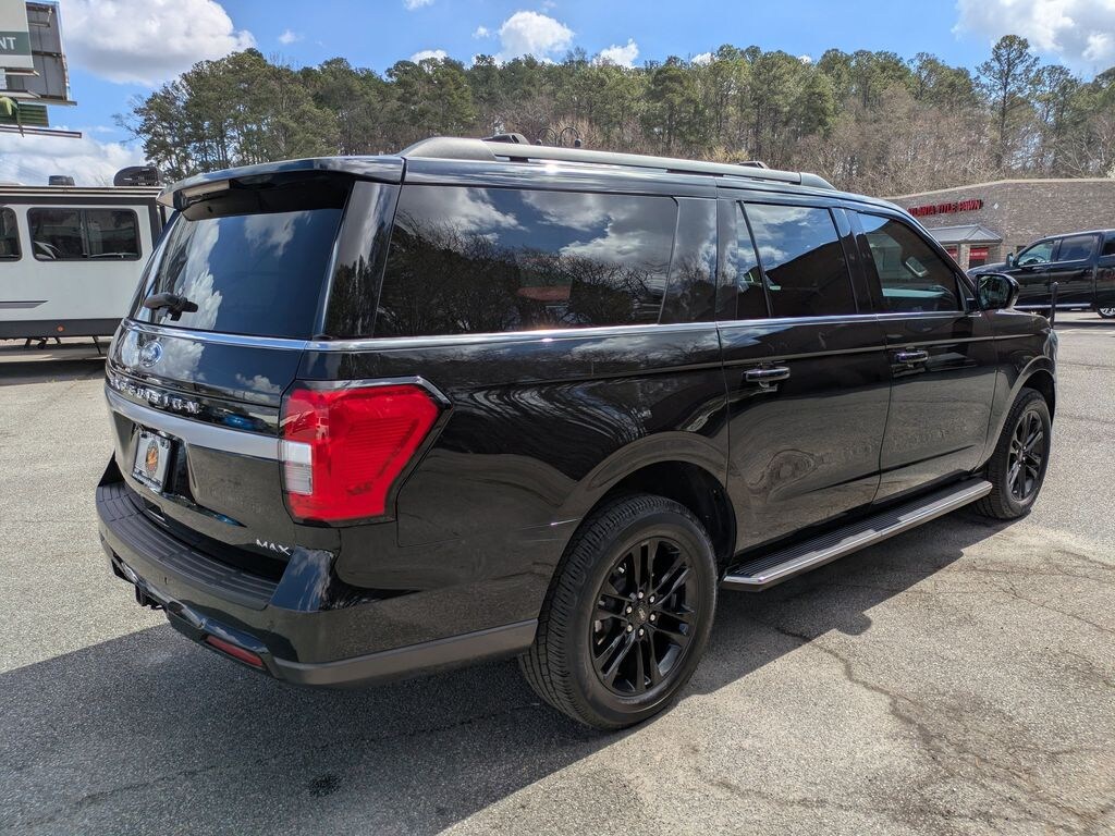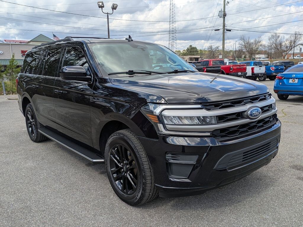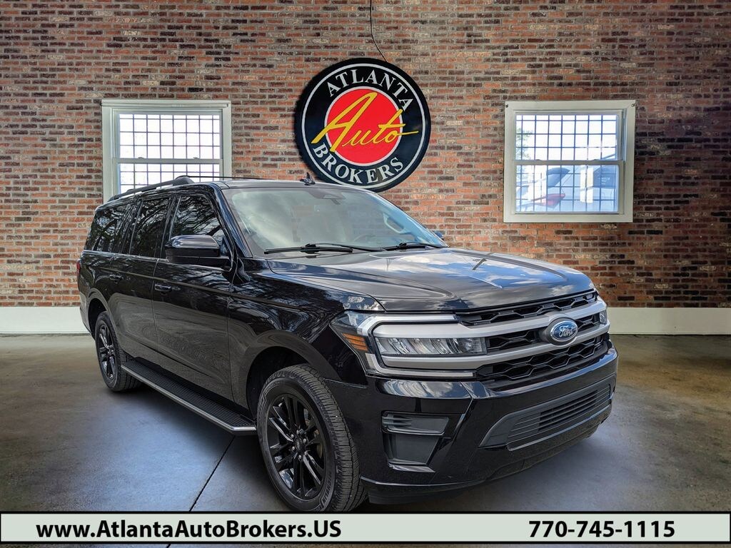Black Metallic 2022 Ford Expedition Max XLT EcoBoost 3.5L V6 GTDi DOHC 24V Twin Turbocharged 10-Speed Automatic 4D Sport Utility Black Accent Package (Black Rear Bumper, Gloss Black Painted Front Bumper Skid Plate, and Wheels: 20" 6-Spoke Gloss Black-Painted), Equipment Group 202A High Package (110V/150W AC Power Outlet, 2nd Row Power-Folding Captain's Chairs, 3rd Row Vinyl Power-Folding Head Restraints, 4-Door Intelligent Access (Lock/Unlock), Accent Color Painted Rear Bumper, ActiveX-Trimmed 1st & 2nd Row Seats, Advanced Security Pack, Ambient Lighting, Bright Chrome Plated Accent Platform Running Boards, Heated Steering Wheel, Heated/Ventilated Front Seats, Power Liftgate, Power Tilt/Telescopic Steering Wheel w/Memory, Power-Adjustable Pedals w/Memory, Power-Folding Sideview Mirrors w/Autofold, Remote Start, SecuriCode Keyless Entry Keypad, and Wireless Charging Pad), 18" Machined-Face Aluminum Wheels, 3.31 Axle Ratio, 3rd row seats: split-bench, 4-Wheel Disc Brakes, 6 Speakers, ABS brakes, Air Conditioning, Alloy wheels, AM/FM radio: SiriusXM with 360L, Auto High-beam Headlights, Auto Start-Stop Removal, Auto-dimming Rear-View mirror, Automatic temperature control, Black Roof-Rail Crossbars, Brake assist, Bumpers: body-color, Cloth Front Captain's Chairs, Compass, Delay-off headlights, Driver door bin, Driver vanity mirror, Dual front impact airbags, Dual front side impact airbags, Electronic Stability Control, Emergency communication system: SYNC 4 911 Assist, Exterior Parking Camera Rear, Four wheel independent suspension, Front anti-roll bar, Front Bucket Seats, Front Center Armrest, Front dual zone A/C, Front reading lights, Fully automatic headlights, Garage door transmitter, Heated door mirrors, Illuminated entry, Leather steering wheel, Low tire pressure warning, Navigation system: Connected Navigation, Occupant sensing airbag, Outside temperature display, Overhead airbag, Overhead console, Panic alarm, Passenger door bin, Passenger vanity mirror, Power door mirrors, Power driver seat, Power steering, Power windows, Radio data system, Radio: AM/FM Stereo w/MP3 Capable, Rear air conditioning, Rear anti-roll bar, Rear reading lights, Rear window defroster, Rear window wiper, Reclining 3rd row seat, Remote keyless entry, Security system, SiriusXM w/360L, Speed control, Speed-sensing steering, Speed-Sensitive Wipers, Split folding rear seat, Spoiler, Steering wheel mounted audio controls, SYNC 4 w/Enhanced Voice Recognition, Tachometer, Telescoping steering wheel, Tilt steering wheel, Traction control, Trip computer, Variably intermittent wipers, and Voltmeter.