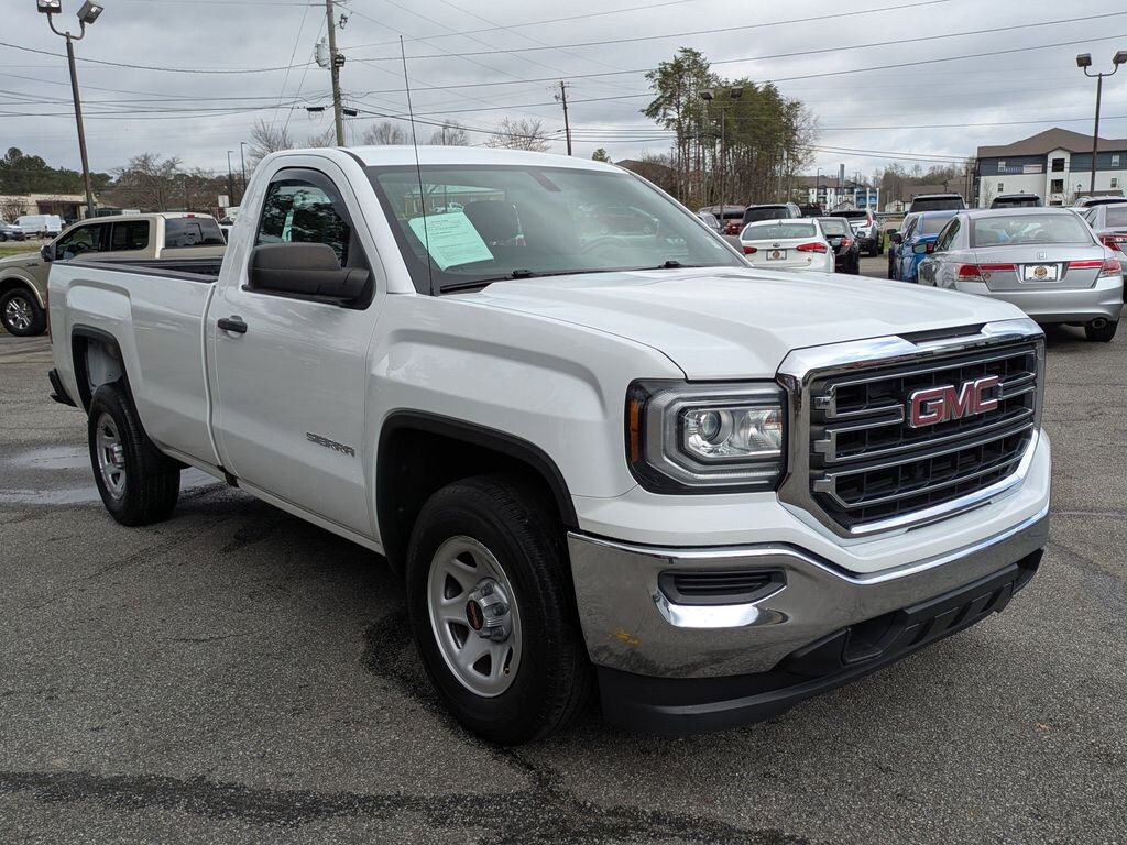 Summit White 2018 GMC Sierra 1500 EcoTec3 5.3L V8 6-Speed Automatic Electronic with Overdrive 2D Standard Cab Preferred Equipment Group 1SA (150 Amp Alternator, 3.5" Diagonal Monochromatic Display DIC, Black Manual Outside Mirrors, Graphite-Colored Rubberized-Vinyl Floor Covering, Single-Zone Air Conditioning, and Solar Absorbing Tinted Glass), 4-Wheel Disc Brakes, 40/20/40 Front Split Bench Seat, 6 Speakers, 6-Speaker Audio System, ABS brakes, Air Conditioning, AM/FM radio, Auxiliary External Transmission Oil Cooler, Black Power Adjustable Heated Outside Mirrors, Brake assist, Bumpers: chrome, Cloth Seat Trim, Delay-off headlights, Driver door bin, Dual front impact airbags, Dual front side impact airbags, Electronic Stability Control, Exterior Parking Camera Rear, Front anti-roll bar, Front Center Armrest w/Storage, Front License Plate Kit, Front reading lights, Front wheel independent suspension, Fully automatic headlights, Heavy Duty Suspension, High-Intensity Discharge Headlights, Low tire pressure warning, Occupant sensing airbag, Overhead airbag, Overhead console, Passenger door bin, Passenger vanity mirror, Power steering, Power Windows w/Driver Express Up & Down, Premium audio system: GMC Infotainment System, Radio data system, Radio: AM/FM/GMC Infotainment System, Rear step bumper, Remote Keyless Entry, Remote Locking Tailgate, Speed control, Speed-sensing steering, Tachometer, Tilt steering wheel, Traction control, Trip computer, Variably intermittent wipers, Voltmeter, and Wheels: 17" x 8" Painted Steel.