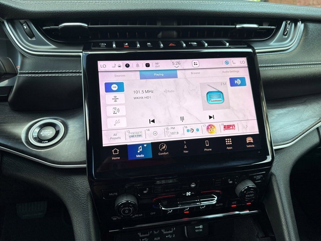 Bright White Clearcoat 2022 Jeep Grand Cherokee L Limited 3.6L V6 24V VVT 8-Speed Automatic 4D Sport Utility Quick Order Package 22E, 10.1" Touchscreen Display, 3.45 Rear Axle Ratio, 3rd row seats: split-bench, 4-Wheel Disc Brakes, 4G LTE Wi-Fi Hot Spot, 506 Watt Amplifier, 6 Speakers, 9 Amplified Speakers w/Subwoofer, ABS brakes, Active Noise Control System, Air Conditioning, All Radio Equipped Vehicles, Alloy wheels, AM/FM radio: SiriusXM with 360L, Anti-whiplash front head restraints, Apple CarPlay, Audio memory, Auto High-beam Headlights, Automatic temperature control, Brake assist, Bumpers: body-color, Capri Leather Seats, Compass, Connected Travel & Traffic Services, Connectivity - US/Canada, Delay-off headlights, Disassociated Touchscreen Display, Driver door bin, Driver vanity mirror, Dual front impact airbags, Dual front side impact airbags, Dual-Pane Panoramic Sunroof, Electronic Stability Control, Emergency communication system, For Details, Visit DriveUconnect.com, For More Info, Call 800-643-2112, Four wheel independent suspension, Front anti-roll bar, Front Bucket Seats, Front Center Armrest w/Storage, Front dual zone A/C, Front fog lights, Front reading lights, Fully automatic headlights, Garage door transmitter, Global Telematics Box Module (TBM), Google Android Auto, GPS Antenna Input, GPS Navigation, HD Radio, Heated door mirrors, Heated front seats, Heated rear seats, Heated steering wheel, Illuminated entry, Integrated Center Stack Radio, Integrated Voice Command w/Bluetooth, Interior Rear Facing Camera, Knee airbag, Leather steering wheel, Low tire pressure warning, Manual Fold Seatbacks, Memory seat, Normal Duty Suspension, Occupant sensing airbag, Outside temperature display, Overhead airbag, Overhead console, Panic alarm, ParkView Rear Back-Up Camera, Passenger door bin, Passenger vanity mirror, Power door mirrors, Power driver seat, Power Liftgate, Power passenger seat, Power steering, Power windows, Radio data system, Radio: Uconnect 5 Nav w/10.1" Display, Radio: Uconnect 5 w/8.4" Display, Rear air conditioning, Rear anti-roll bar, Rear reading lights, Rear window defroster, Rear window wiper, Reclining 3rd row seat, Remote keyless entry, Security system, SiriusXM Radio Service, SiriusXM Satellite Radio, SiriusXM w/360L, Speed control, Speed-Sensitive Wipers, Split folding rear seat, Spoiler, Steering wheel mounted audio controls, Tachometer, Telescoping steering wheel, Tilt steering wheel, Traction control, Trip computer, Turn signal indicator mirrors, USB Host Flip, Variably intermittent wipers, Voltmeter, Wheels: 18" x 8.0" Fully Painted Aluminum 2, and Wheels: 20" x 8.5" Polished/Painted AluminuM.