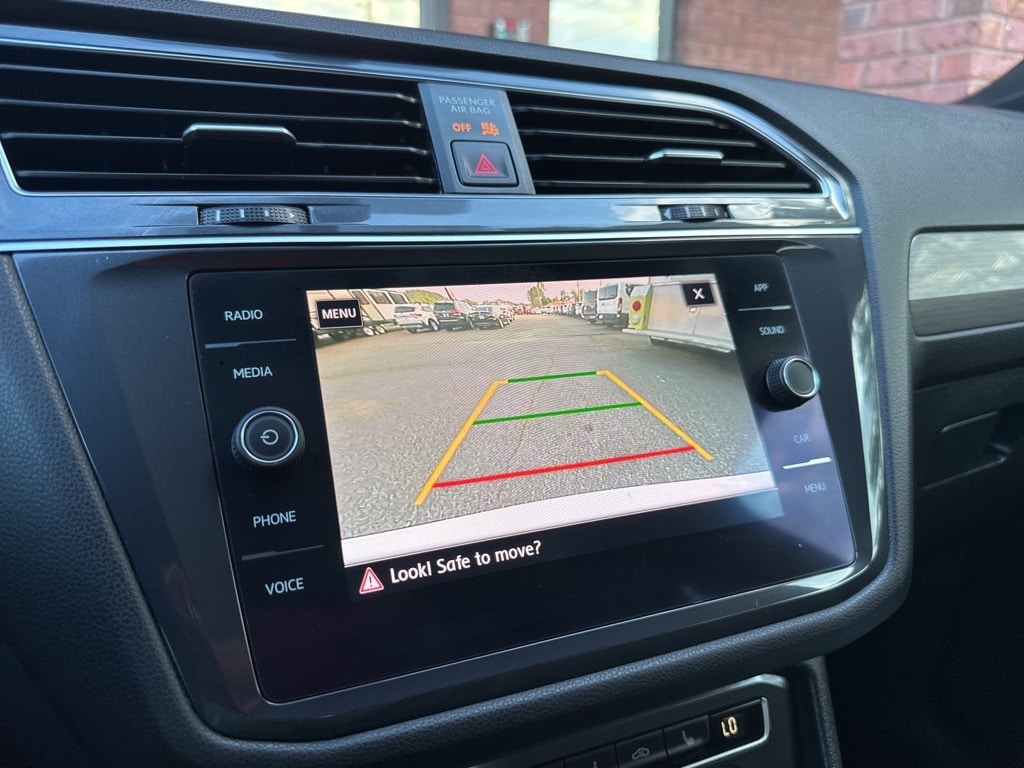 Pure White 2020 Volkswagen Tiguan 2.0T SE R-Line Black 2.0L TSI DOHC 8-Speed Automatic with Tiptronic 4D Sport Utility 3-Row Rubber Monster Mats w/Logo Kit (Set of 5), 3.33 Axle Ratio, 3rd row seats: bench, 4-Wheel Disc Brakes, 4-Wheel Independent Suspension, 6 Speakers, ABS brakes, Air Conditioning, Alloy wheels, AM/FM radio: SiriusXM, Automatic temperature control, Brake assist, Bumpers: body-color, Cargo Area Retractable Privacy Cover, Compass, Delay-off headlights, Driver door bin, Driver vanity mirror, Dual front impact airbags, Dual front side impact airbags, Electronic Stability Control, Emergency communication system: VW Car-Net services (capabilities require enrollment or subscription), Exterior Parking Camera Rear, First Aid Kit, Forward collision: FCW w/Autonomous Emergency Braking mitigation, Four wheel independent suspension, Front anti-roll bar, Front Bucket Seats, Front Center Armrest, Front dual zone A/C, Front reading lights, Fully automatic headlights, Heated door mirrors, Heated Front Comfort Seats, Heated front seats, Heavy Duty Trunk Liner w/VW CarGo Blocks, Illuminated entry, Leather Shift Knob, Low tire pressure warning, Occupant sensing airbag, Outside temperature display, Overhead airbag, Overhead console, Panic alarm, Passenger door bin, Passenger vanity mirror, Perforated V-Tex Leatherette Seating Surfaces, Power door mirrors, Power driver seat, Power steering, Power windows, Radio data system, Rear anti-roll bar, Rear reading lights, Rear seat center armrest, Rear window defroster, Rear window wiper, Remote keyless entry, Roadside Assistance Kit, Roof rack: rails only, Security system, Speed control, Speed-sensing steering, Split folding rear seat, Spoiler, Steering wheel mounted audio controls, Tachometer, Telescoping steering wheel, Tilt steering wheel, Traction control, Trip computer, Turn signal indicator mirrors, Variably intermittent wipers, VW App-Connect (w/Apple CarPlay, Android Auto & MirrorLink), and VW Care.